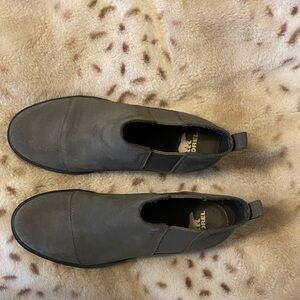 Sorel ankle boots in olive with black accents. Perfect for casual outings.