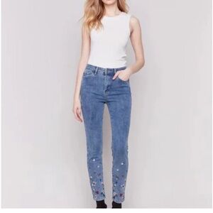 Charlie B Floral Embroidered Jeans Size 10 Women’s Skinny Stretch Denim