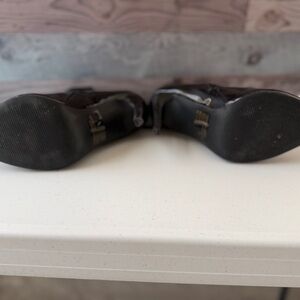 Elevate your look with these glossy black patent boots. Sleek design with a high heel. Perfect for a night out. Worn once. Like new! Perfect condition