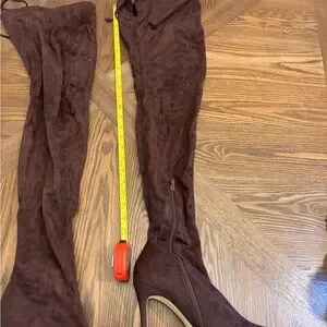 Elevate your wardrobe with these chic brown over-the-knee boots. Perfect for adding a touch of elegance to any outfit.
