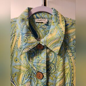 Coldwater Creek Embroidered Paisley Barn Coat SMALL Pastel Coastal Grandma