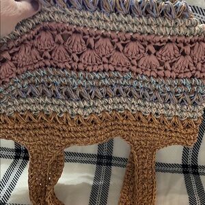 Elevate your style with this chic woven tote bag. Featuring a beautiful blend of brown and pink, it's perfect for any casual outing. Enjoy the unique woven design that adds a touch of elegance to your look.