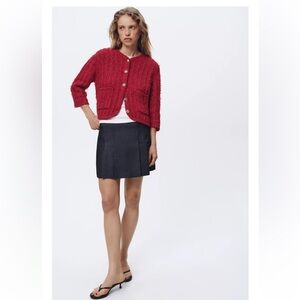 NWT Zara Knit Cardigan Red Gold Buttons Sweater Top Small New 4192/006 Classy