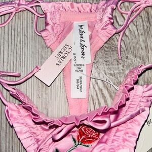 Dainty embroidered blooms detail this romantic For Love & Lemons XS Set with silky soft fabric by Victoria Secret, scrunchie-style straps and decorative picot bows complete the look!