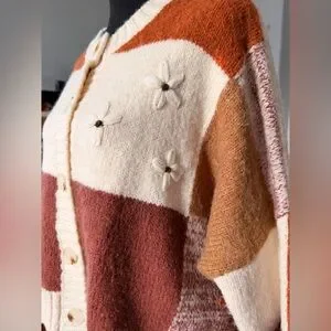 Floral chunky knit patchwork cardigan.