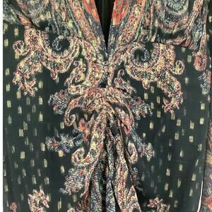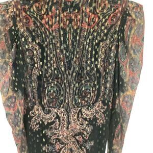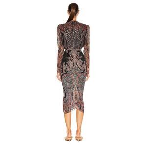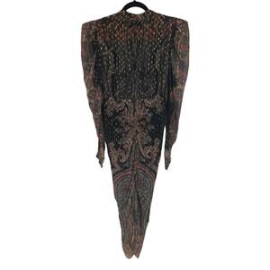 tags: paisley print, metallic, cocktail, special event, party, wedding guest, black tie, long sleeve, unique, timeless, designer