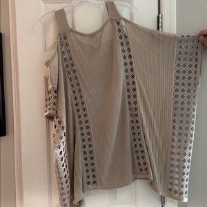 Chico's $128 Retail! Taupe Mesh Knit Cutout Poncho Top. Cold shoulder style. Size 3 which equates to an XL. Refer to brand website if unfamiliar. Great condition! Such a fun versatile top.