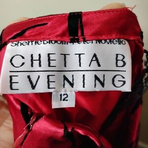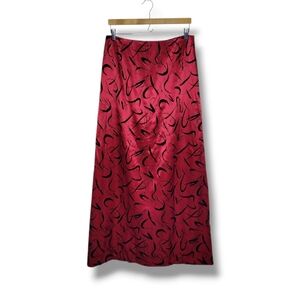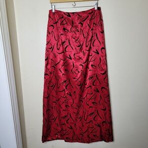 Vintage Chetta B red Duchess satin midi skirt with black flocked velvet in an abstract burnout pattern.