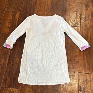 White jersey tunic with embroidery detail. Can be worn as a short dress or a swimsuit cover up.