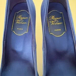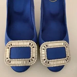 Roger Vivier High Heeled Blue Satin Pumps with Crystal Buckle Size 38 (7.5)