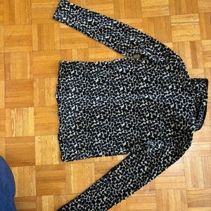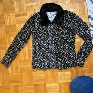 Leopard, velvet like long sleeve button up sweater. Fur collar