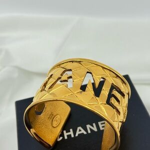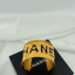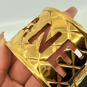 Statement Chanel bracelet with quilted design in a bold gold finish