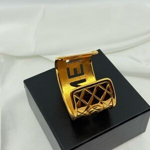 CHANEL Gold Quilted Cut Out Logo Statement Cuff, 1980s