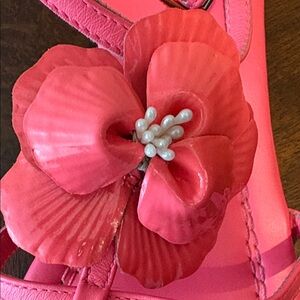 Kate Spade sandals bright coral/pink Leather/patent leather flowers size 8 EUC