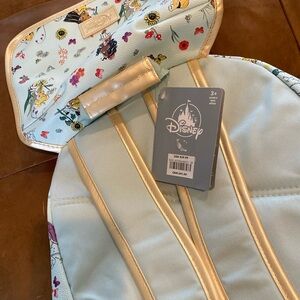 Adorable Disney backpack with floral pattern. Features a pink pom pom. Ideal for school or travel. New with tags. Approximately 13" W x 13"-14" H