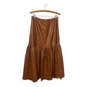 STAUD Orchid Vegan Leather Tiered Midi Skirt Women's Size 6 Banded Waist