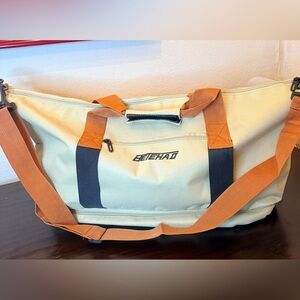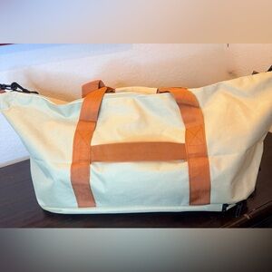 Beiehao New in Package large canvas travel/gym bag. Khaki with brown trim.