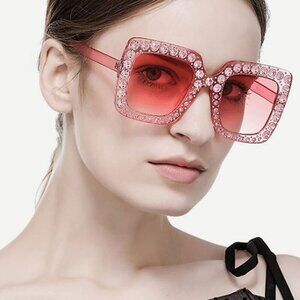 Rhinestone Sunglasses Oversized Bling UV400 Retro Women Beach Disco — A fun, glamorous statement piece.