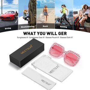 Features: These oversized square sunglasses scream retro-cool with a blinged-out vibe, perfect for making a splash at beach parties, music festivals, or just turning heads on the street. Heavy-duty rhinestones stay put, and the HD clarity UV400 lenses keep your eyes protected while you shine. Lightweight and comfy with adjustable arms, they’re as practical as they are pretty.