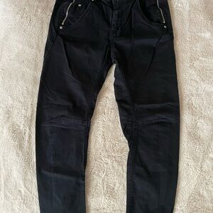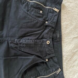 Sides zippers are real, so it could be unzipped there as well.Sleek black pants with zipper details. Perfect for any occasion.