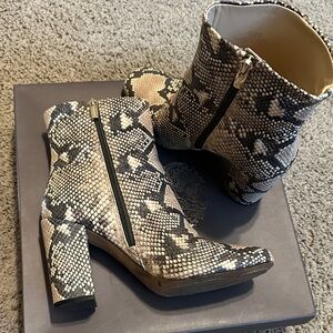 Chic snake print design. Black and cream colors. Perfect for stylish outings.