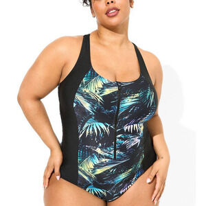 Torrid Plus Size 6 One Piece Active Tropical Print Wireless Racerback Swimsuit