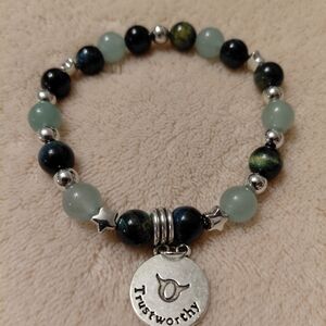 Elegant yet practical bracelet with Genuine Crystal beads and a Taurus zodiac charm.