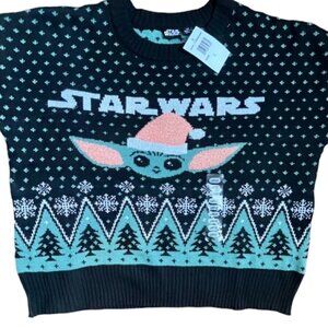 STAR WARS Men's Mandalorian Baby Yoda Santa Knit Ugly Christmas Sweater Large