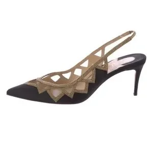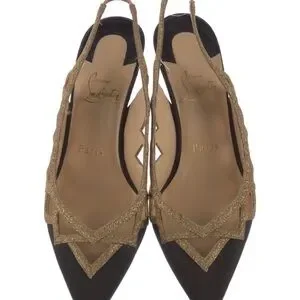Christian Louboutin black/gold Glitter Patterned Slingback Pumps