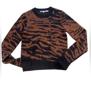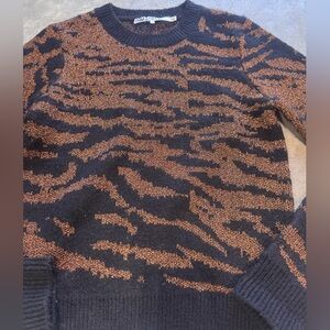 Pam & Gela Black and Brown Metallic Zebra Sweater, Size Small, Crew Neck