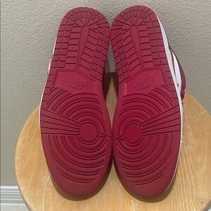On this model, you will find a red sole paired with a white midsole. The body of the shoe is made out of white leather, with patches of red leather on the toes, heels, and sides. The famous Nike swoosh symbol appears in red leather as well.