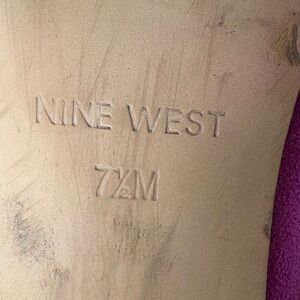 Elevate your style with these stunning pink heels from Nine West, featuring a classic stiletto design and a sophisticated pointed toe. The luxurious suede-like material adds a rich texture, while the elegant knotted detail at the toe enhances their chic appeal. Perfect for making a statement at any special occasion.