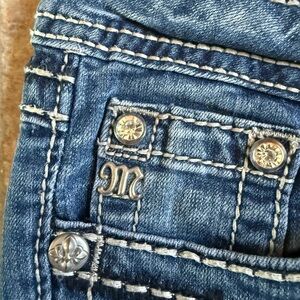 Stylish blue jeans with a flared design. Perfect for a trendy look.