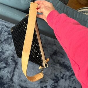 Great bag from Consuela. She has been loved and used gently. I just don’t reach for her anymore. This is your chance to own one of these amazing bags! Please note some marks on bottom of bag as well as a mark on strap. The crossbody strap is perfect. Otherwise it is a very clean and beautiful bag.