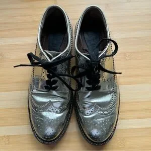 Marni Silver Metallic Brogue Lace Ups Size 40.5