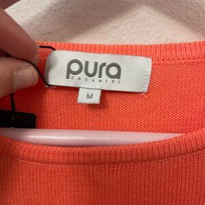 This is a NWT Pura Cashmere Classic Breton Crew Coastal Peach/ White Stripe Sweater Size M. In excellent condition. Brand new with tags attached. See all pics for condition- very minor thread pull.
