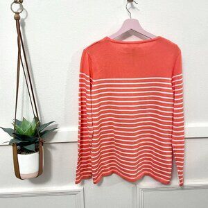 NWT Pura Cashmere Classic Breton Crew Coastal Peach/ White Stripe Sweater Size M