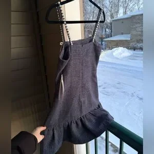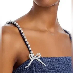 🆕 AQUA Tweed Drop Waist Mini Dress Exclusive Pearl Strap Bow Detail Size S Party