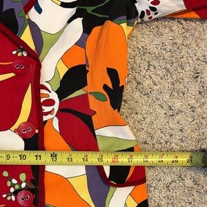 Sooooo cute and sassy! Who needs to blend into the field of black coats?? This is a junior-size large— no stretch, measurements in pictures. 3/4 sleeves, faux pockets, heavy canvas fabric. Love it, wish I could wear it.