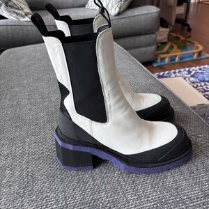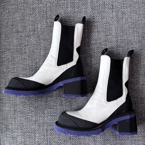 Off-White Luxury Italian Chelsea Leather Boots Purple Accent Chunky Sole Size 39