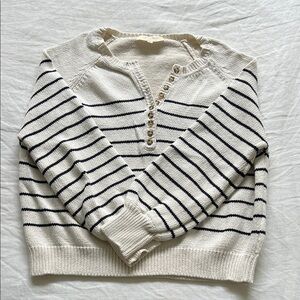 Beautiful lightweight cotton Sézane cream sweater. There are some tiny fibers that have loosened from regular wear, but I haven’t tried to fix them. Worn a handful of times and still in very good, used condition. I’m reposhing since I don’t reach for it often as I’d like!