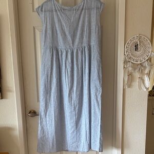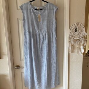 NWT Lintico 100% Linen Blue Striped Maxi Dress