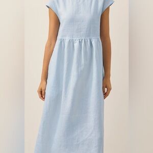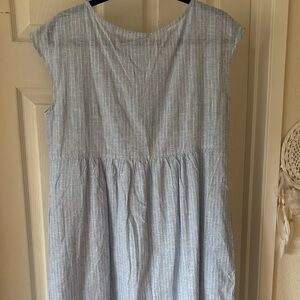 Elevate your sustainable wardrobe with this light, 100% linen, soft blue striped maxi!