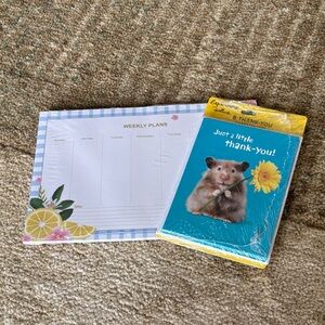 Weekly planner with floral and lemon design. Includes thank-you cards featuring a cute hamster and sunflower.