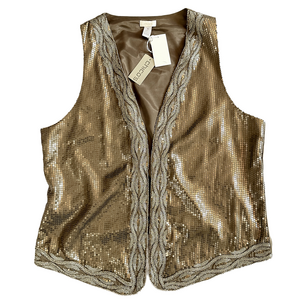 Chicos size 3 Daisy Jones 70s style bronze sequin embellished open vest XL waistcoat style
