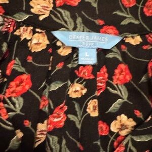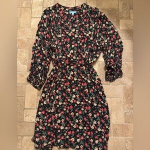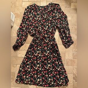 Draper James Floral Black Dress, Size Large, Adjustable Waist, Long Sleeve