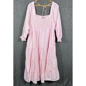 Women's Dress Pink Swiss Dot Milkmaid Smocked Cottagecore Coquette Midi Size XL