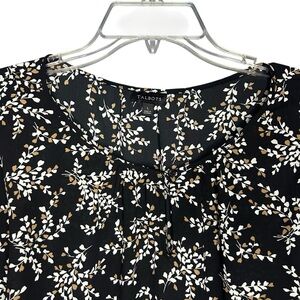 Talbots Floral Black and White Blouse Shirt Polyester Black tan Size Large