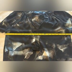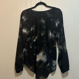 Chic blouse with a modern black and gray pattern. Perfect for versatile styling.