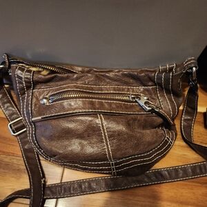 Elegant Fossil leather bag. Rich brown tone. Ideal for daily use.